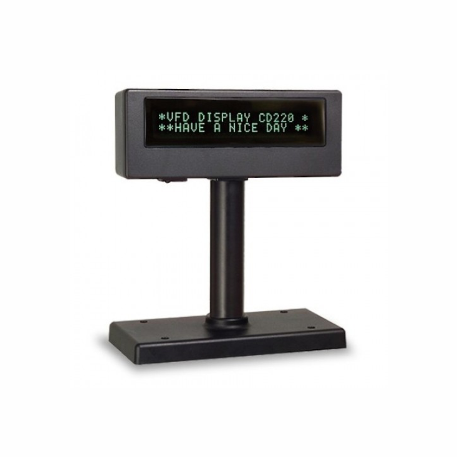 Дисплей покупателя Shtrih LB-220 2*20 VFD 2х – строчный дисплей, по 20 символов в каждой строке. Обладает высокой яркостью и широким углом обзора. Для сравнения, средняя яркость дисплея покупателя типа LCD составляет всего 200cd/m2, в то время как яркость LB 220 составляет 1000cd/m2, что в пять раз ярче. Поэтому клиент прекрасно видит всю информацию отображаемую LB 200 даже при ярком солнечном свете, при удивительно широком угле обзора.